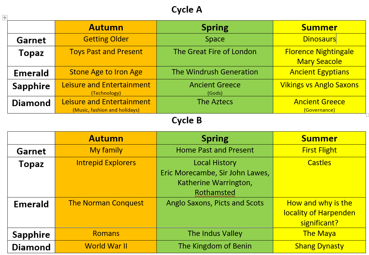 History is taught in a two year rolling cycle.